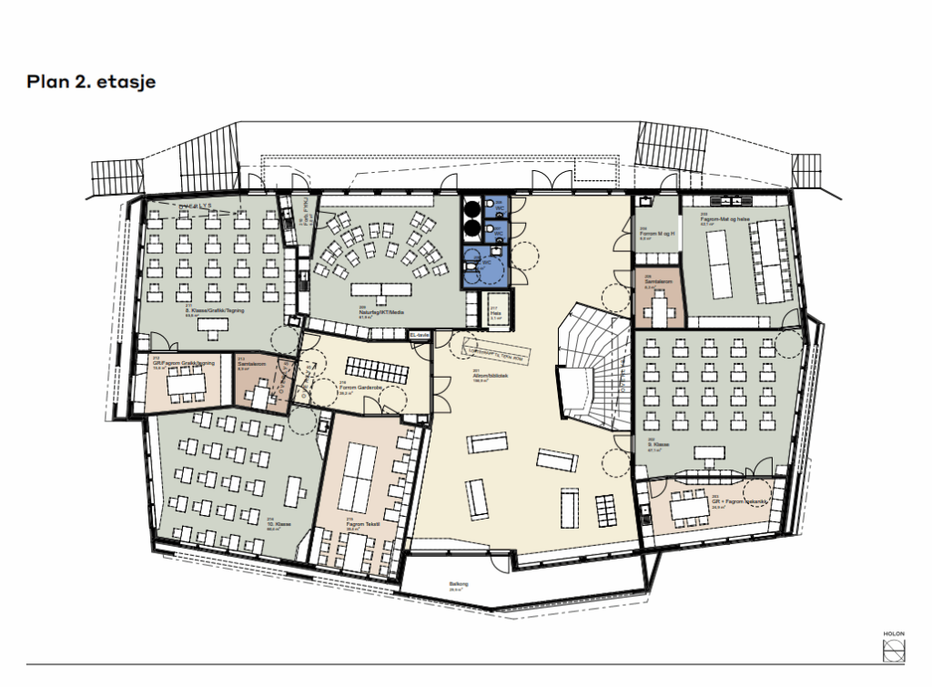 Det nye bygget holdes moderat i størrelsen og blir på ca 1500 kvm bruksareal. Omtrent det Bellevuebygget er i dag. Det vil inneholde 5 klasserom, naturfagrom, skolekjøkken, tekstilrom og personalrom.